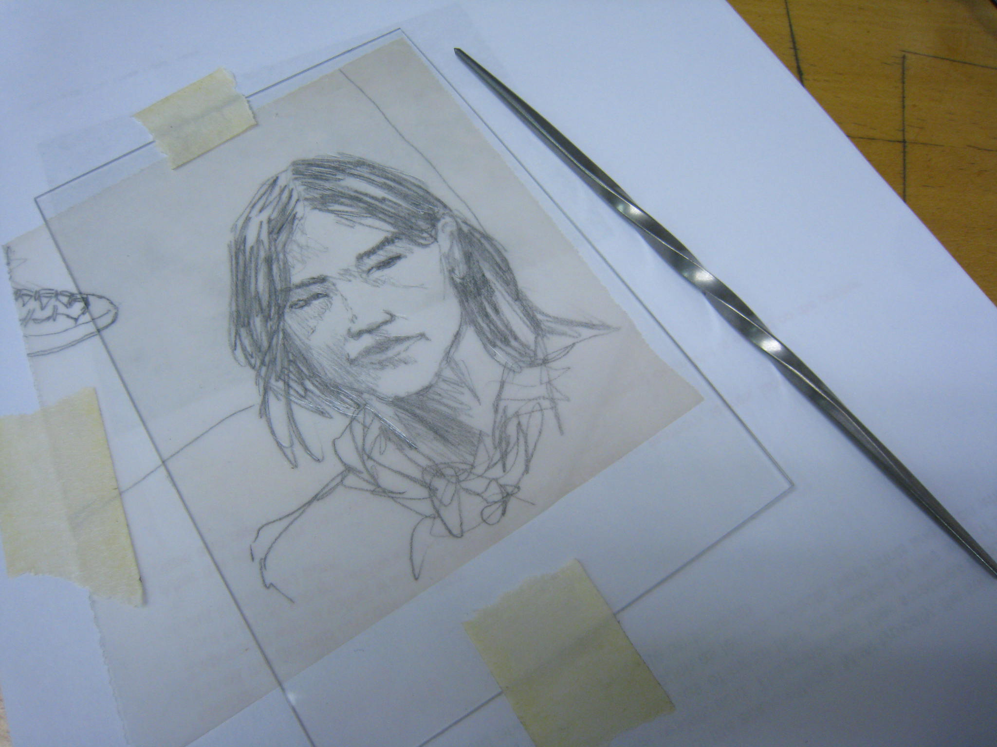 2 Published March 14, 2014 at 2048 × 1536 in Print Making Etching on perspex from an old rough sketch for The Long March. It’s very hard to see the lines scratched in the perspex.