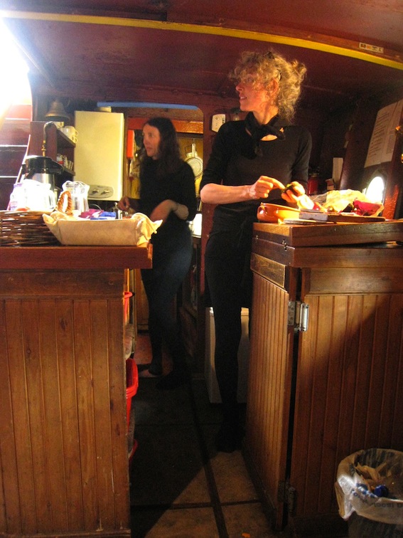 barge4 Published April 10, 2014 at 567 × 756 in Strings and Things Sarah and Liz making lunch in the galley – which is much tinier than it looks here!