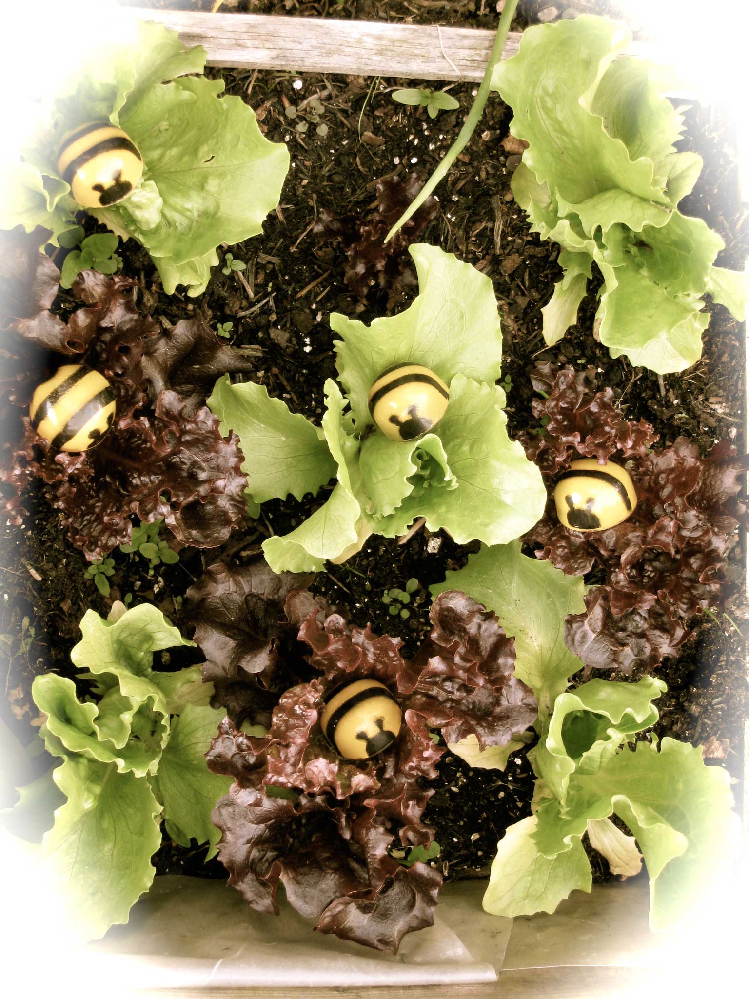 The chocolate bees loved everything. They got so excited the artist almost lost track of them among the colourful flowers. (They could move surprisingly fast considering they had no wings or feet.)