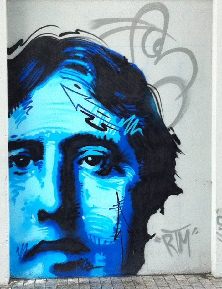 Portrait of Oscar Wilde by graffiti artists Dusto and Psychonautes, on the rear wall of the Cork Opera House, Half Moon Street.