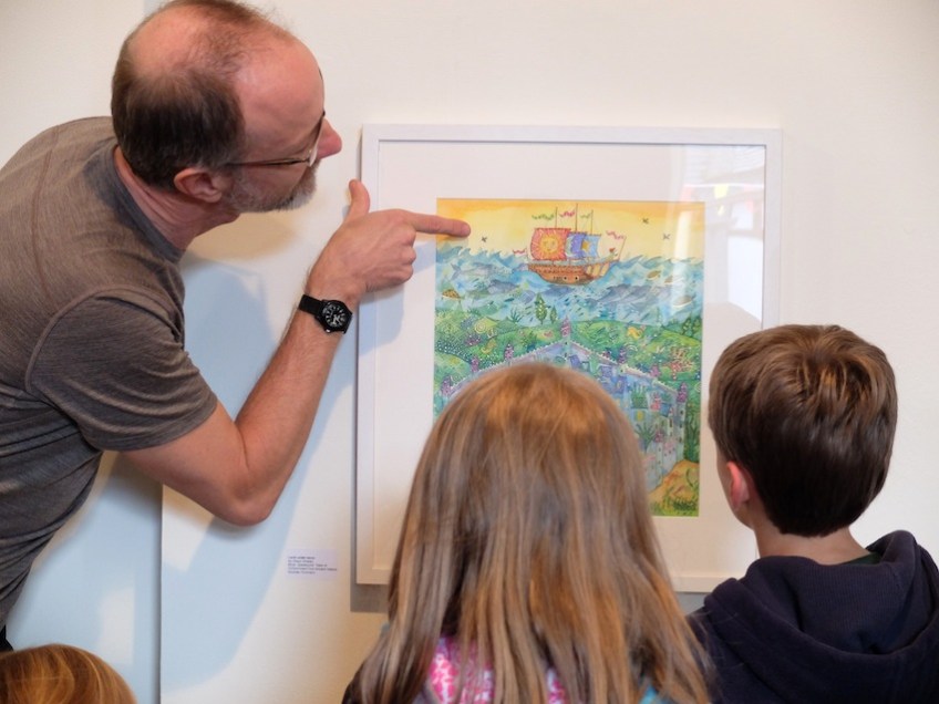 DSCF0360 Published November 2, 2014 at 850 × 638 in A Guided Tour of Pictiúr We asked the kids to tell us what they could see in this image by Olwyn Whelan. They were so quick at seeing ALL the tiny details -dolphins, sea horses, mermaids, fish, birds, buildings…