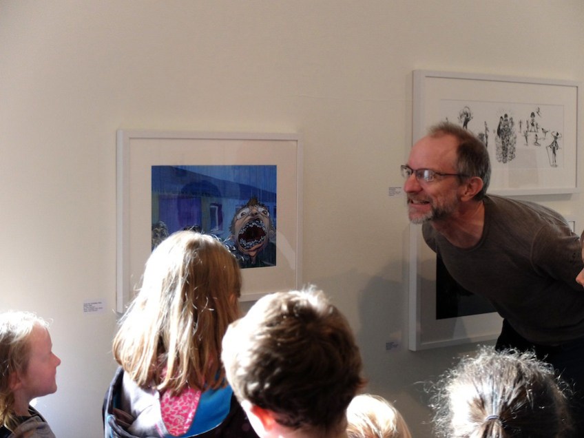 DSCF0368 Published November 2, 2014 at 850 × 638 in A Guided Tour of Pictiúr Checking for braces at Oisín McGann’s picture. A boy who had read the book was able to tell us all exactly what was going on here – all about the two nasty bully girls and the doppleganger.