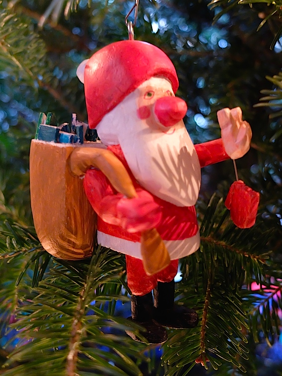DSCF0720 Published December 24, 2014 at 567 × 756 in @ the Emberleys’ this Christmas A seventies Santa makes a peace sign (note his sack is full of books)