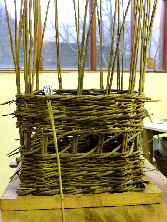 DSCF1257 Published March 3, 2015 at 567 × 756 in Basket Case Sides of the creel are done and the first uprights bent down to start the base.