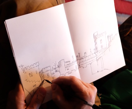DSCF1738 Published April 30, 2015 at 425 × 351 in @ the Castle Michael drawing the castle. He filled the sky with cloud dragons…