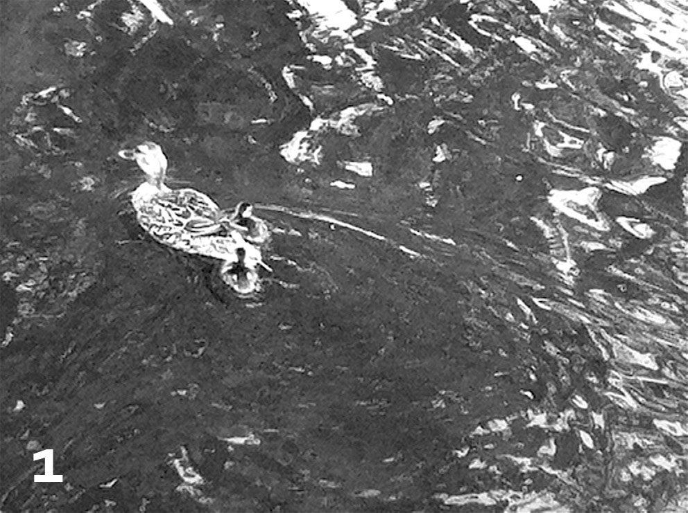 After a few hours writing we again took the river route home, stopping as soon as we reached the water (1) to check for Painted Turtles. There was a duck swimming below us, with two small ducklings.
