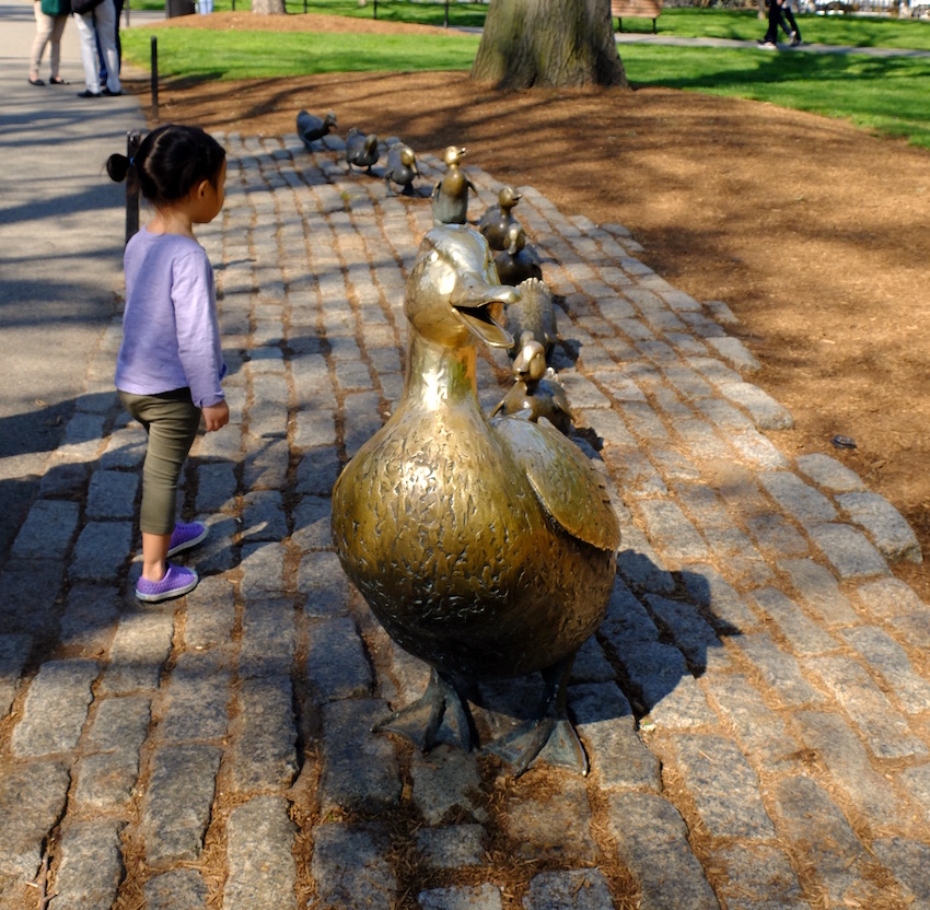 Make Way for Ducklings by Robert McCluskey is a classic American picturebook set in Boston. The statue commemorating the book is in Boston Public Garden and I took this photo in May, a few days before Michael and myself met one tenacious mammy duck and her two plucky ducklings in downtown Ipswich Mass. What followed was a pretty amazing set of coincidental sightings, as we anxiously followed their attempts to get back home.