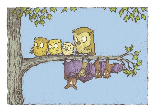 The first time I attempted reading Owl Bat Bat Owl was with 70 kids in Limerick Library and I have to admit to wondering how exactly it was going to work. I needn’t have worried. I’ve read it many times now, in many places, and kids always nail it!