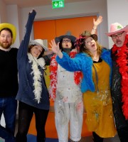 Blocking in the greys. Then everything goes wrong when I paint Choona’s face. It’s a mess. I panic. Niamh comes upstairs to calm me down but it’s a couple of hours before Im back on track and I have to ask everyone who drops by to keep moving as I’m running out of time. Once I redo the face I relax a bit but now I’m racing the clock to get everything else done.