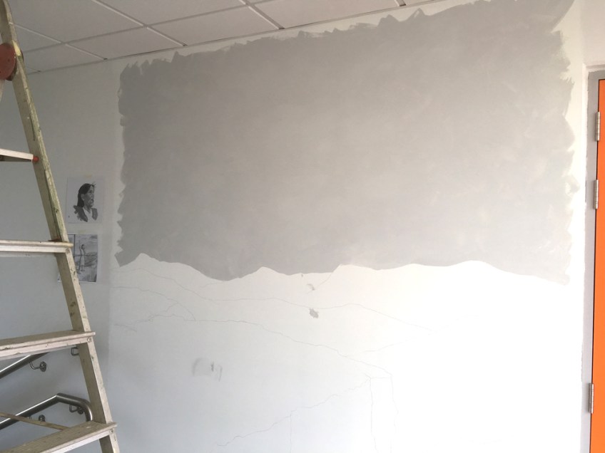ML3 Published February 15, 2018 at 1000 × 750 in Murals with PJ Lynch basic grey for sky in – a relief to finally have paint on the wall