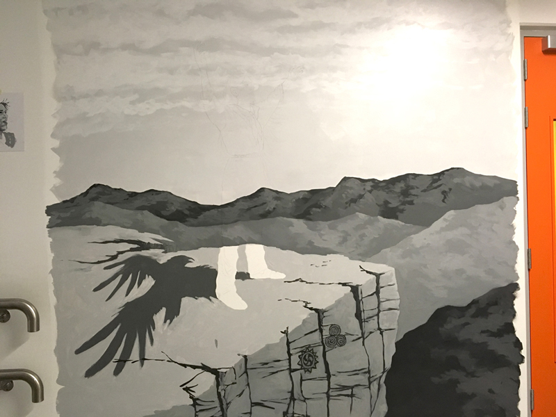 ML8a Published February 15, 2018 at 800 × 600 in Murals with PJ Lynch End of day one and I’m happy with how far I’ve got.