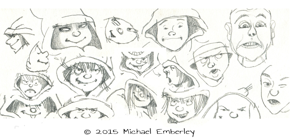 In April 2014 there were scribbled ‘thumbnail’ sketches, as I tried to catch the idea which was emerging. Sometime later I began exploring the story’s characters in more detail, filling a sketchbook. Then several weeks were spent working towards a proper full-size dummy.