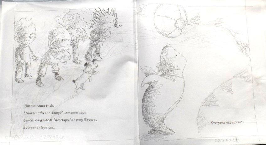 New-Kid-16 Published March 3, 2016 at 1701 × 933 in New-Kid-16 spread 7 Ellie uses her coat to turn into a seal