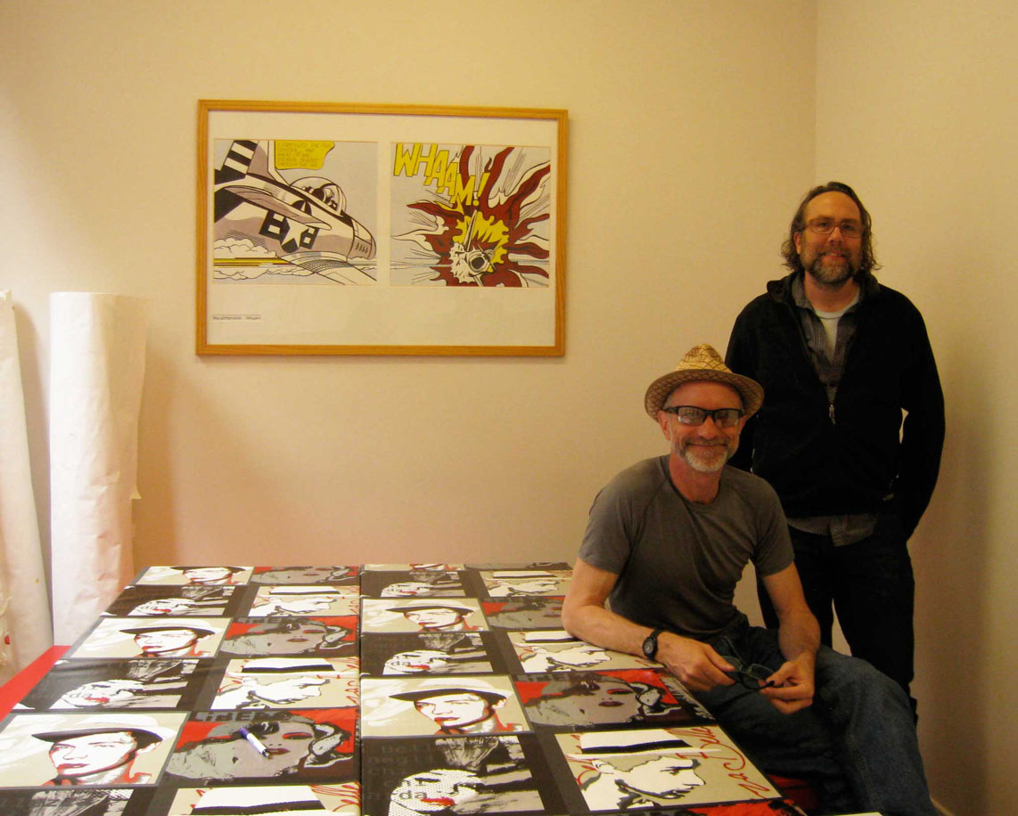 Top photo of Niamh and myself beginning our murals is one PJ quietly snapped from the return of the stairs.
